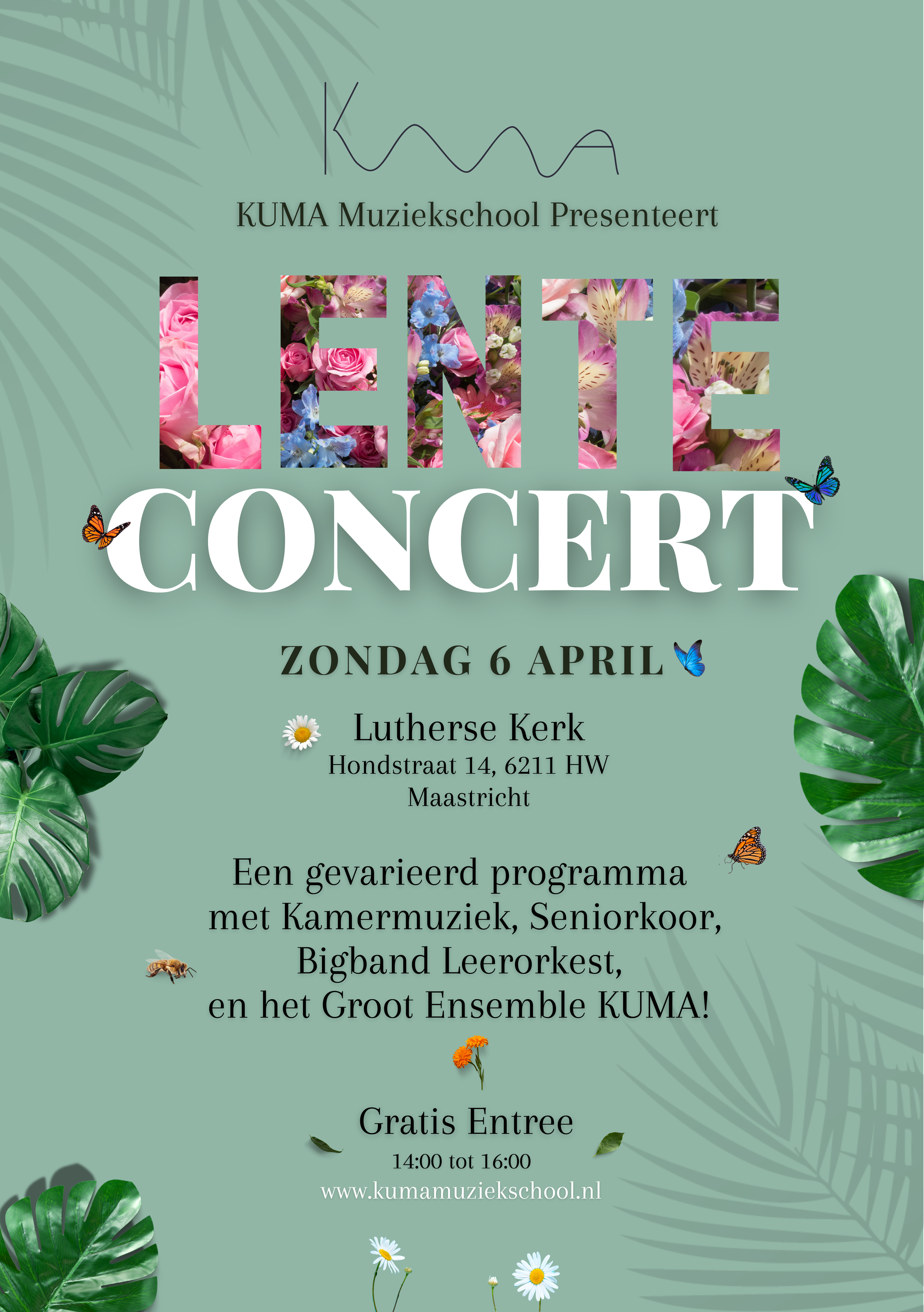 KUMA Muziekschool Maastricht presenteert zich voor de eerste keer buiten thuisbasis Centre Céramique Het concert markeert de eerste keer dat de school zich buiten haar thuisbasis Centre Céramique presenteert. Het concert is gratis toegankelijk voor iedereen.